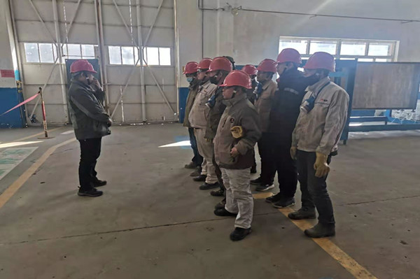 2月16日十萬噸離子膜A槽陰極液總管漏點有增大趨勢,根據停車檢修計劃,消除系統隱患,2月17日A 槽單槽停車更換北側陰極液總管。為了此次檢修工作順利進行,裝置在2月16日下午組織召開了常白班班組長以上管理人員檢修動員會,會議重點強調檢修前系統置換、安全檢修、保證檢修質量及檢修進度等方面做了安排部署。
