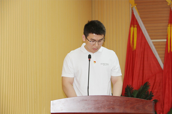 新黨員代表李愛軍作表態發言。他號召廣大黨員不忘初心,勇挑重擔、銳意進取,時刻為企業發展和國家建設貢獻智慧與力量。