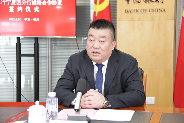 中國銀行寧夏分行行長黨委書記、行長肖達致辭。他對金昱元化工集團和中國銀行寧夏分行產(chǎn)業(yè)鏈發(fā)展項目戰(zhàn)略合作協(xié)議簽約表示熱烈祝賀,他表示,簽約后,中國銀行寧夏分行將一如既往,盡銀行所能,為金昱元化工集團項目建設給予資金上的大力支持,并預祝簽約圓滿成功。