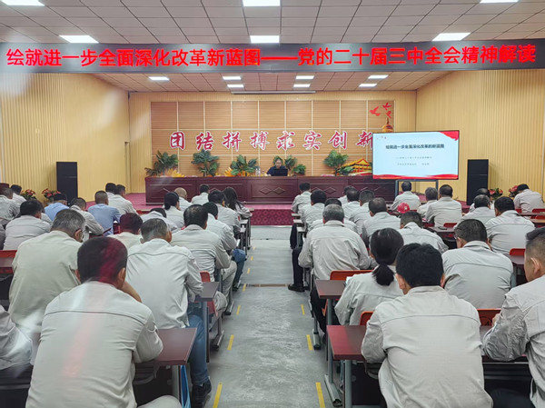 為深入學(xué)習(xí)貫徹黨的二十屆三中全會(huì)精神,切實(shí)把思想和行動(dòng)統(tǒng)一到全會(huì)決策部署上,促使黨員干部認(rèn)真領(lǐng)會(huì)習(xí)近平總書記關(guān)于全面深化改革新思想、新觀點(diǎn)、新論斷,深刻把握改革主題、重大原則和舉措,6月6日,寧夏金昱元化工集團(tuán)股份有限公司黨委組織開(kāi)展“繪就進(jìn)一步全面深化改革新藍(lán)圖——黨的二十屆三中全會(huì)精神解讀”主題黨課學(xué)習(xí)。本次黨課由中共吳忠市委黨校鄭自明教授主講。